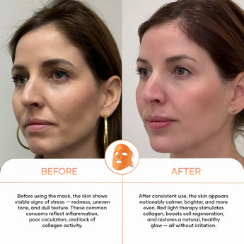 The red light mask stimulates collagen production and improves skin texture. Your skin feels firmer, smoother, and visibly fresher — every day anew.