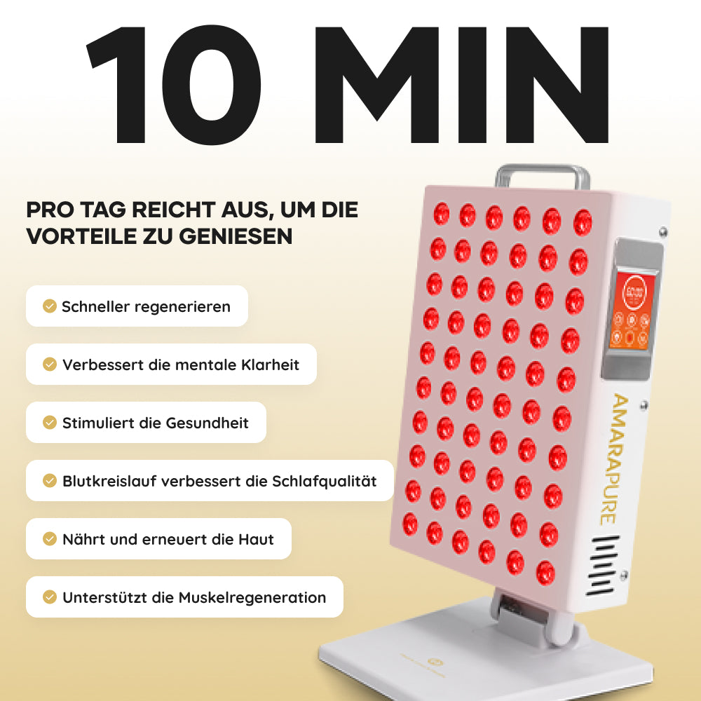 Leistungsstarke Rotlichttherapie für zu Hause, die Ihre Haut, Regeneration und Energie unterstützt.