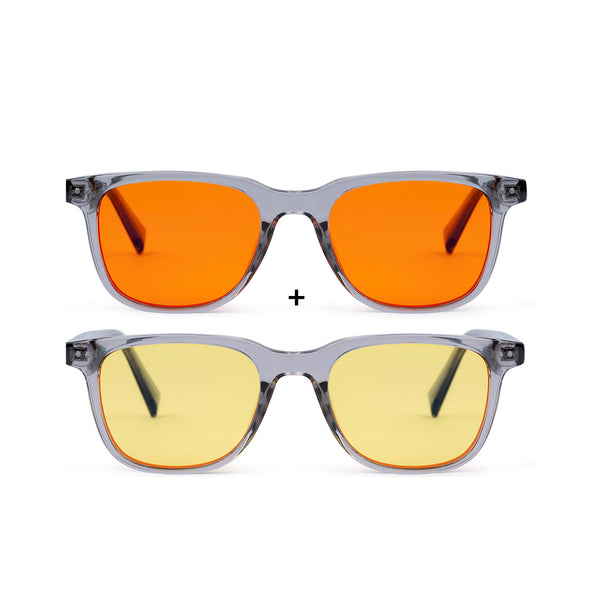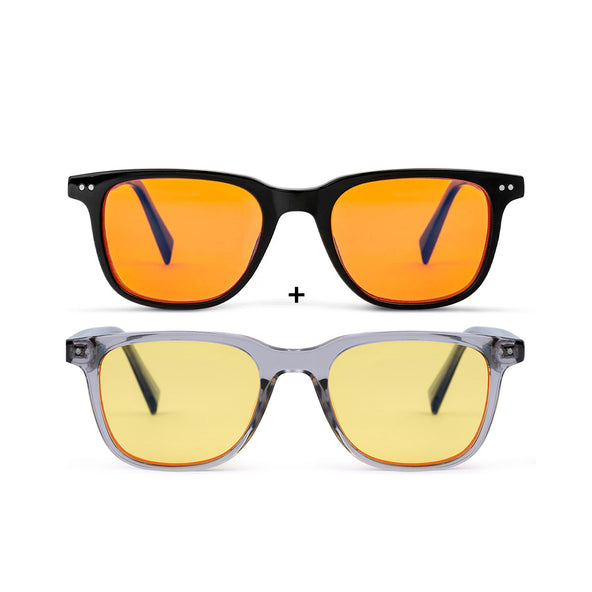 Verwenden Sie die passende Brille je nach Tageszeit – Daygold bei Tageslicht oder leichten Aktivitäten, Midnight bei hellem Kunstlicht am Abend. Beide Brillen schützen Ihre Augen vor blauem Licht, das von LED- und anderen künstlichen Lichtquellen ausgeht.