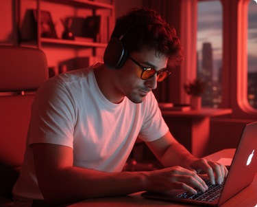 Bescherm je ogen tegen kunstmatig blauw licht. Voor betere focus en slaap. Midnight voor de avond en daygold overdag.