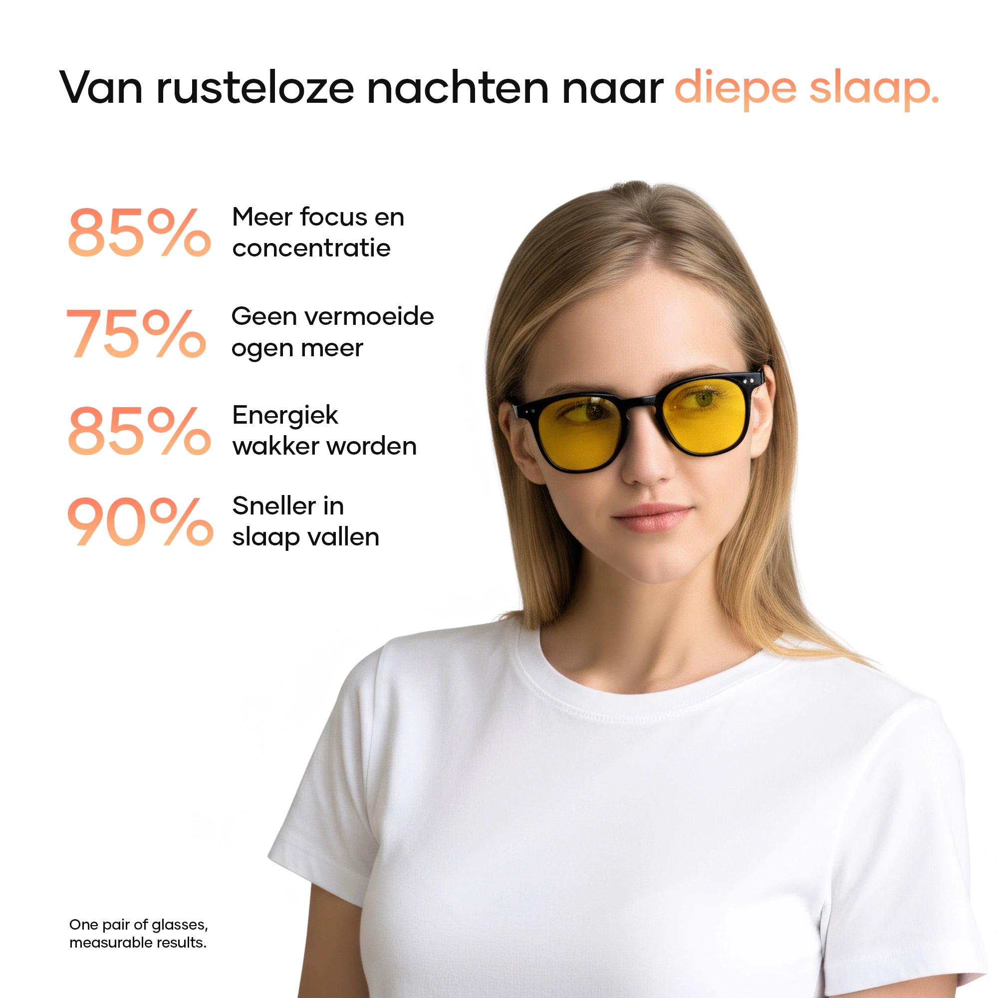 Onze blauwlichtbrillen bieden wetenschappelijk onderbouwde bescherming voor je ogen en slaap. Ideaal voor iedereen die veel tijd doorbrengt achter schermen, overdag én ‘s avonds.