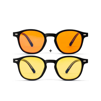 For best resultat, bruk begge brillene konsekvent. Kombinasjonen av daglig fokusbeskyttelse og støtte for kveldssøvn hjelper biorytmen din med å fungere optimalt og reduserer konsekvent digital øyebelastning.