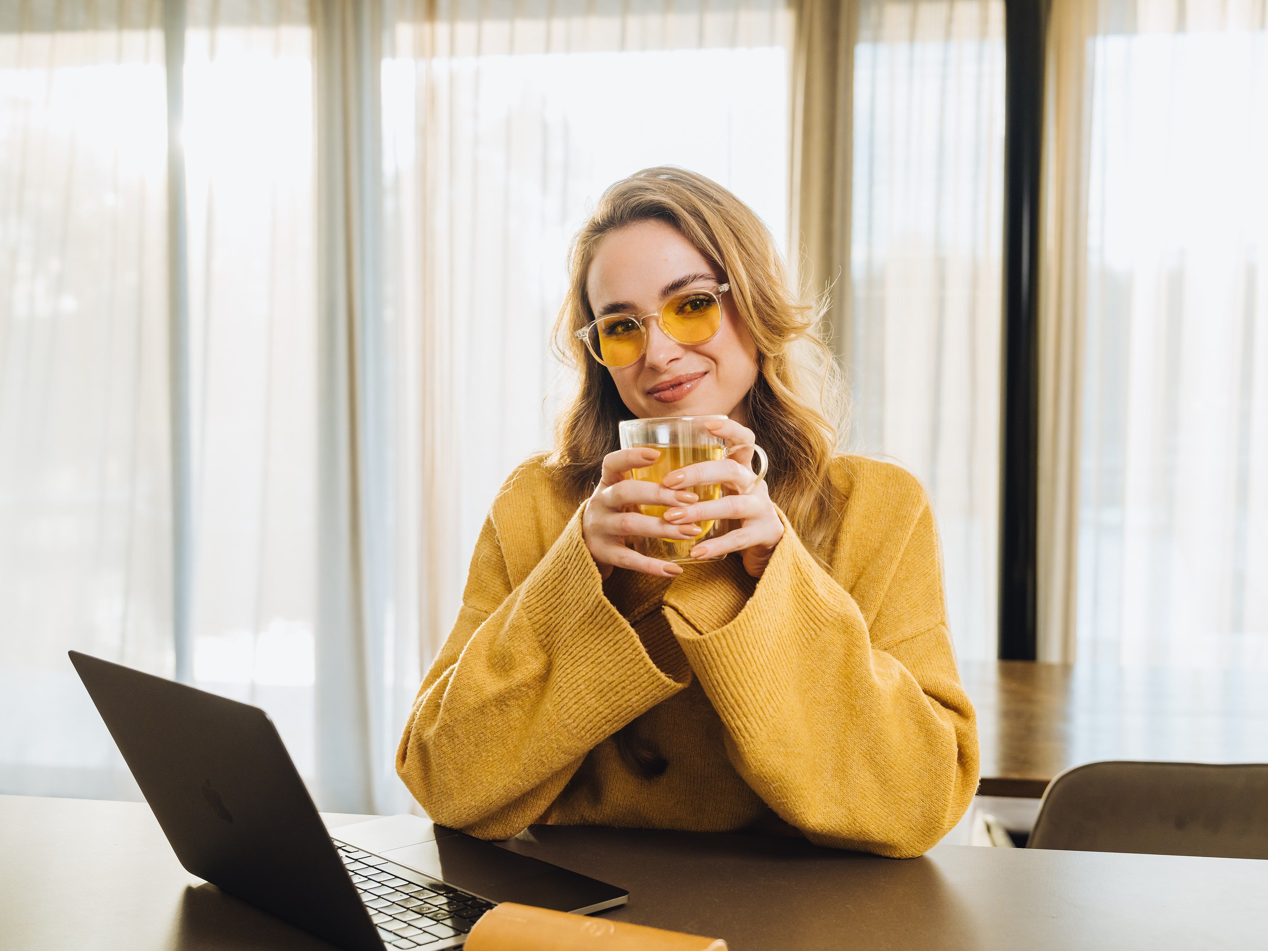 • Mindre slitne øyne: Filtrerer skadelig blått lys og forhindrer brennende eller tørre øyne.