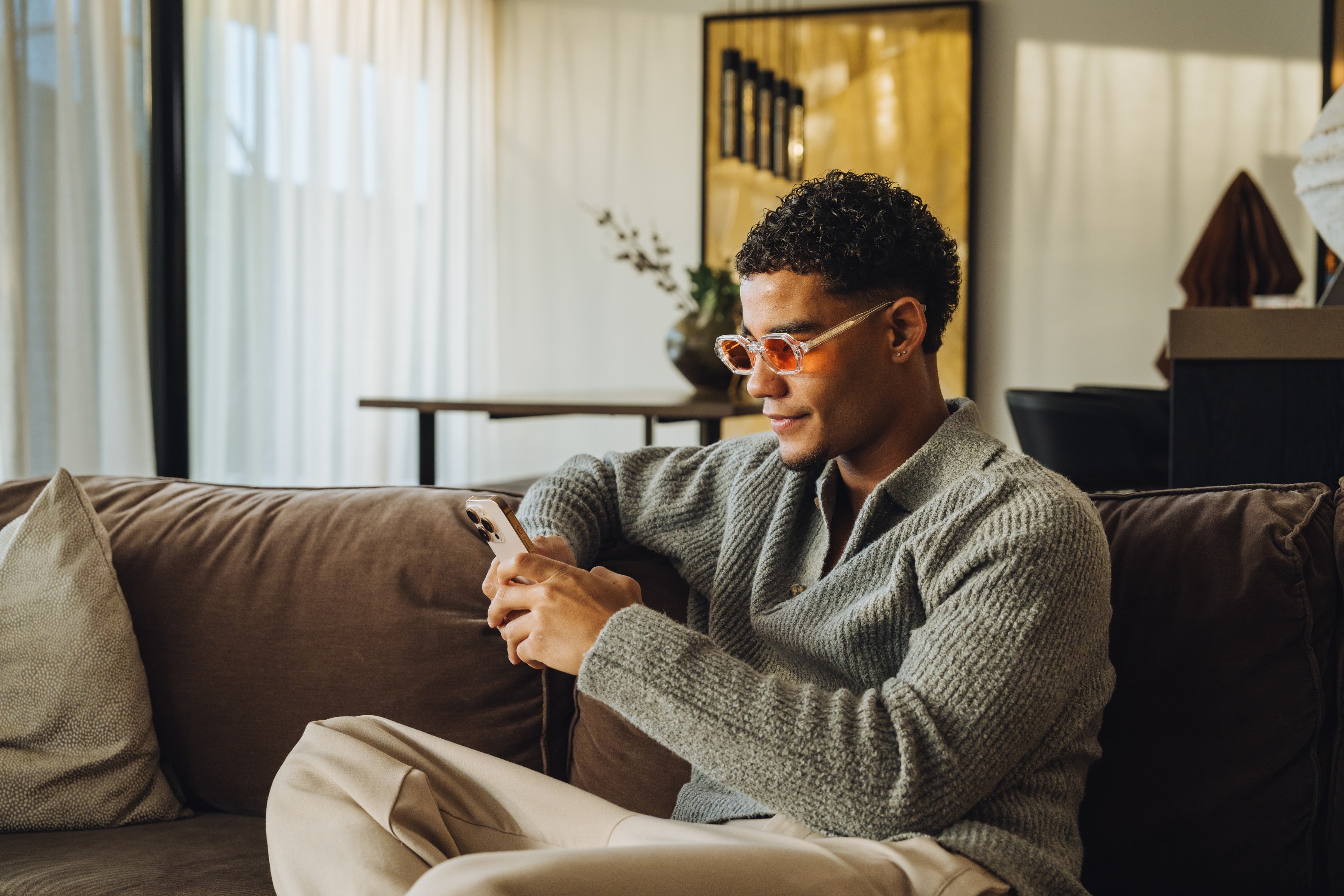 Bruk brillene mens du ser på TV, spiller spill eller leser i sterkt innendørslys. Linsene beskytter mot det blå lyset som sendes ut fra LED-lys og andre kunstige lyskilder.